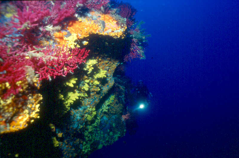 | Auf einer Clubfahrt meines Vereins lernten wir 1998 die Basis von Hans und Gerda Bertz in Ile Rousse kennen. Ile Rousse liegt im Norden Korsikas, Unterkünfte werden auch über die Basis vermittelt. Das Tauchen im Norden und Westen der Insel ist stark wetterabhängig, hin-zu kommt, daß der Basisleiter wenig Einsatz zeigte und sowohl Boot als auch Basis nicht den allerbesten Eindruck auf mich machten. Die Tauchplätze im Norden bestechen z.B. durch mit Gorgonien überzogenen Steilwänden. Zu den Top-Spots im Norden zählt aber wohl der Bomber von Calvi. |